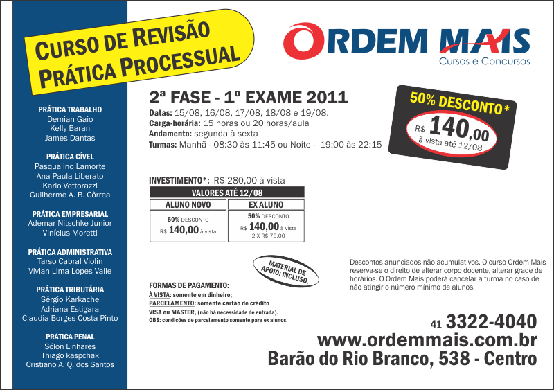 Ordem Mais: Curso de Revisão em Prática Processual para a 2ª Fase do Exame da OAB