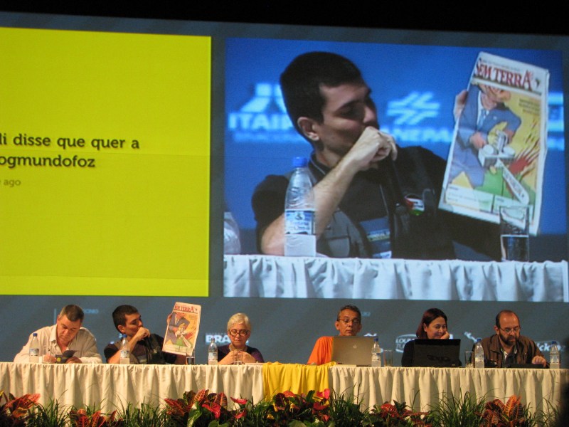 Nesse momento no I Encontro Mundial de Blogueiros falam Leandro Fortes (CartaCapital), Esmael Moraes (blog do Esmael censurado pelo Beto Richa), Conceição Oliveira (blog Maria Frô), com a presidência de Maria Inês Nassif (Carta Maior) e Daniel Bezerra (blog da Dilma).