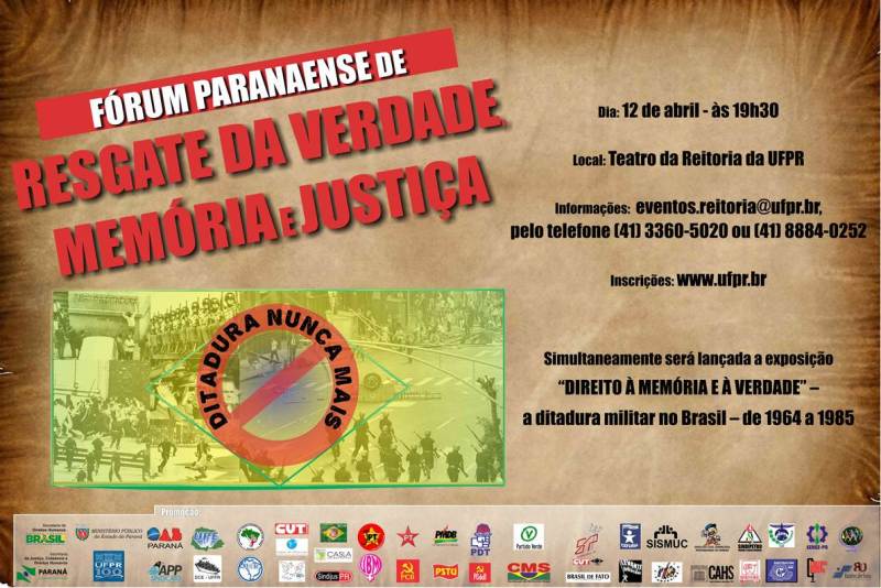Amanhã: Fórum Resgate da Verdade Memória e Justiça – 19h30 – Teatro Reitoria UFPR