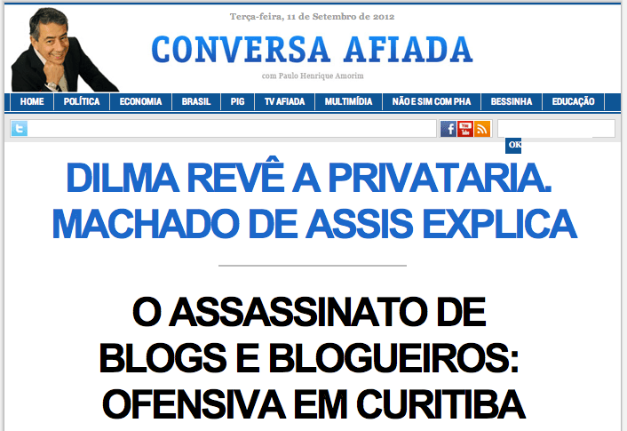 No mais recente atentado contra a liberdade de expressão no Brasil, o prefeito de Curitiba (PR) e candidato à reeleição Luciano Ducci processou o blogueiro Tarso Cabral Violin, apenas porque discordou de duas enquetes publicadas na página mantida pelo blogueiro. A Justiça Eleitoral, num gesto inexplicável, deu ganho de causa ao prefeito-censor e estipulou uma multa de R$ 106 mil, o que inviabiliza a continuidade do blog. No mesmo Paraná, o governador Beto Richa também persegue de forma implacável o blogueiro Esmael Morais, que já foi processado várias vezes e coleciona multas impagáveis.