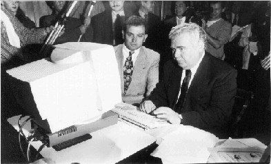 O governador Jaime Lerner e o então presidente da Celepar, Francisco Krassuski.