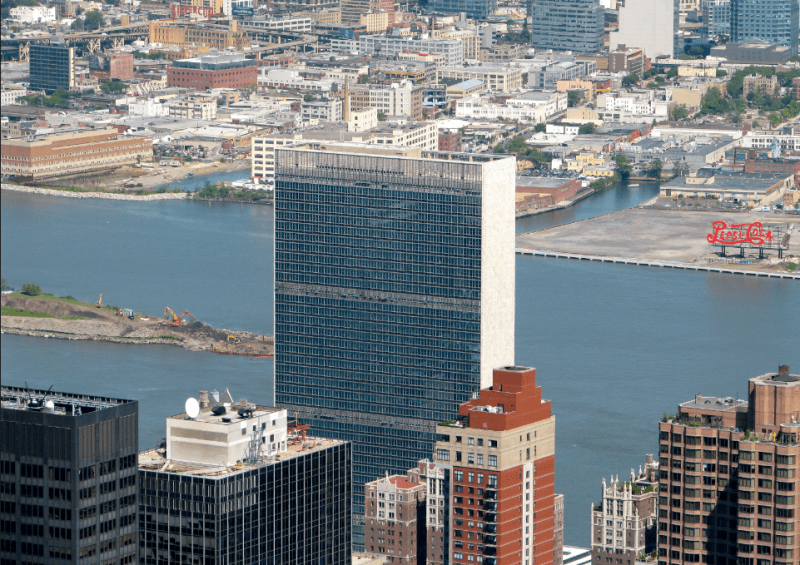 Prédio da ONU em Nova York projetado principalmente por Oscar Niemeyer, entre outros. Foto de Tarso Cabral Violin