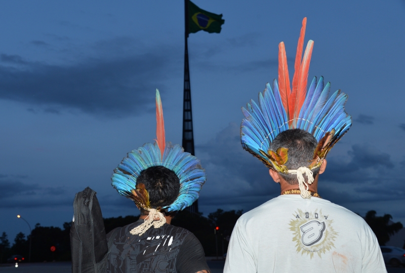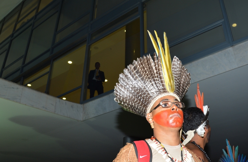 Em Brasília, índios fazem manifestação no Palácio do Planalto, para protestar contra a proposta de emenda constitucional sobre a demarcação de terras indígenas. Fotos de Valter Campanato / ABr.