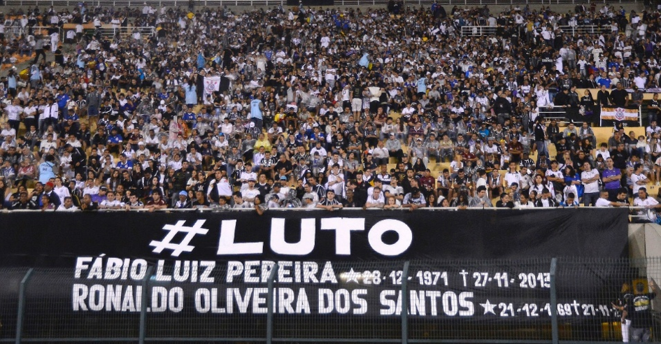 No jogo de hoje no Pacaembu entre Corinthians e Internacional pelo Brasileirão a torcida do timão estendeu faixa em homenagem aos operários mortos no Itaquerão.