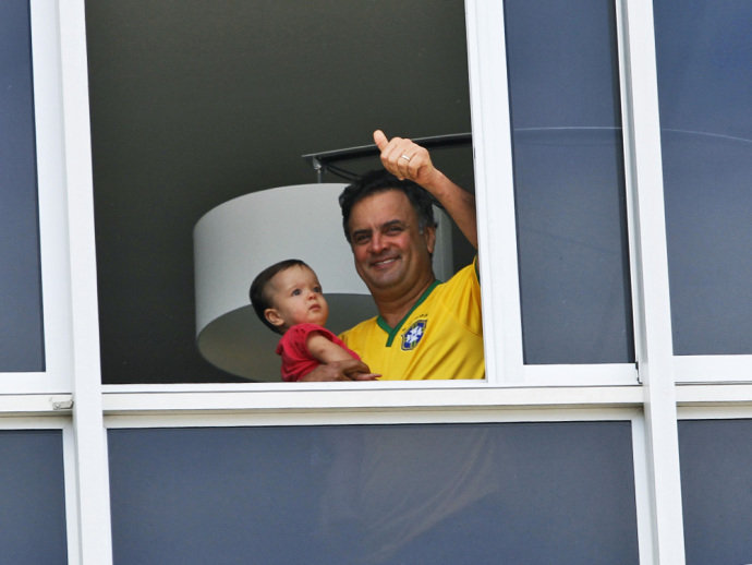 O candidato derrotado à presidência da República em 2014, Aécio Neves (PSDB), não teve coragem de se misturar com a turba durante o ato golpista de 15 de março