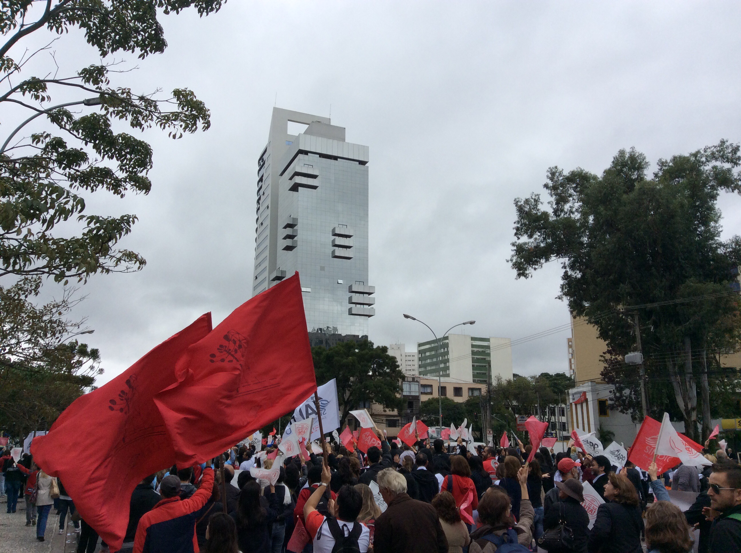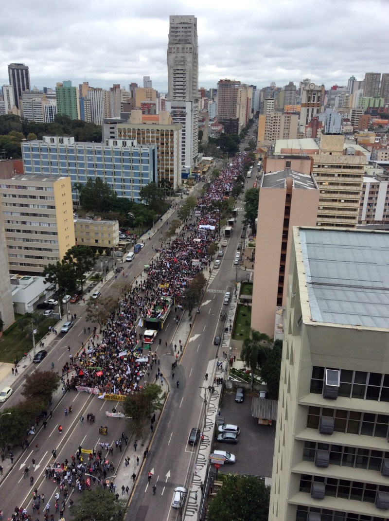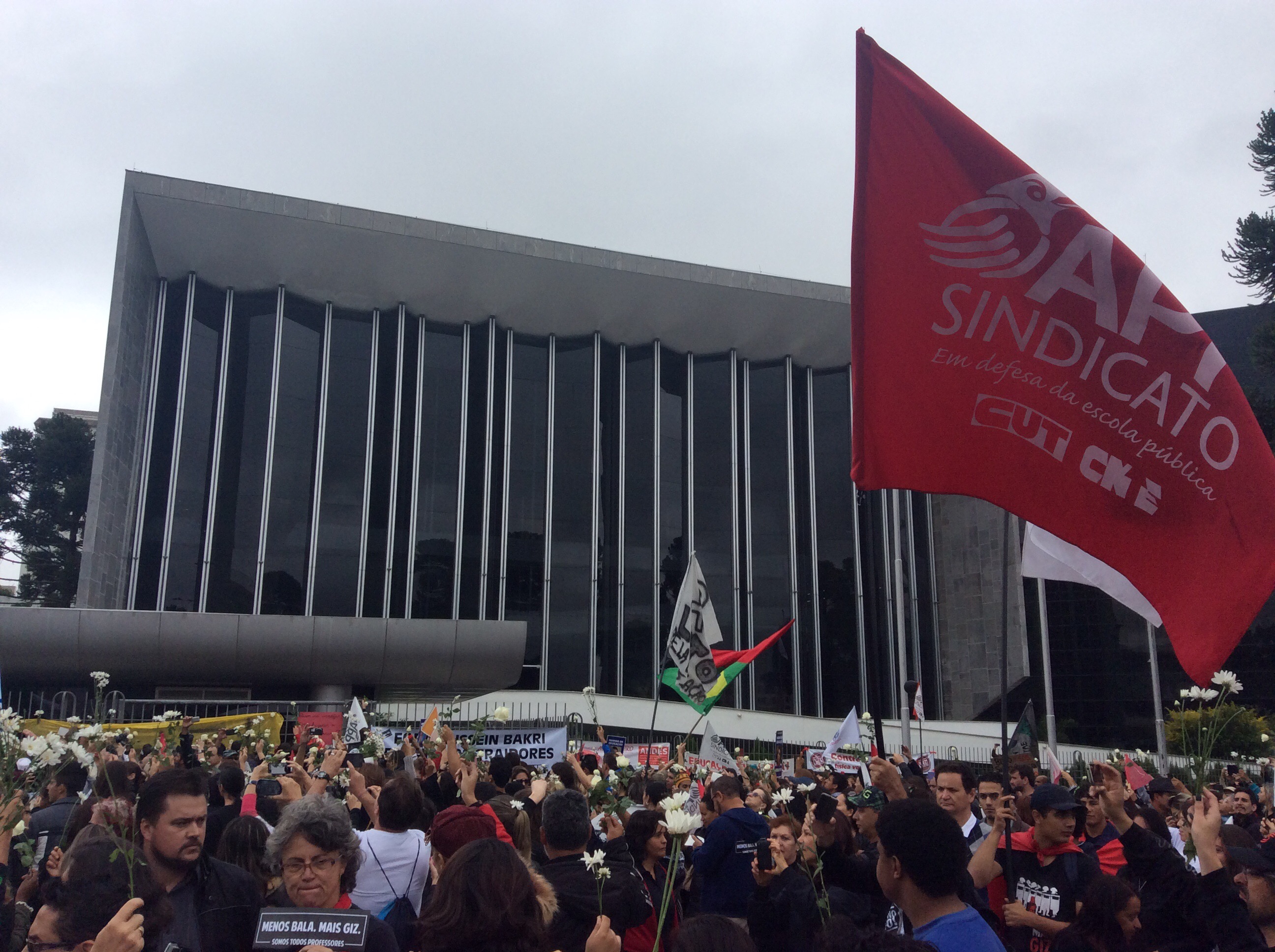 Mais de 20 mil estudantes, professores, servidores, advogados, blogueiros, jornalistas e cidadãos participaram do ato de hoje (5) “Somos todos prosadores, menos bala, mais giz”, no Centro Cívico de Curitiba.