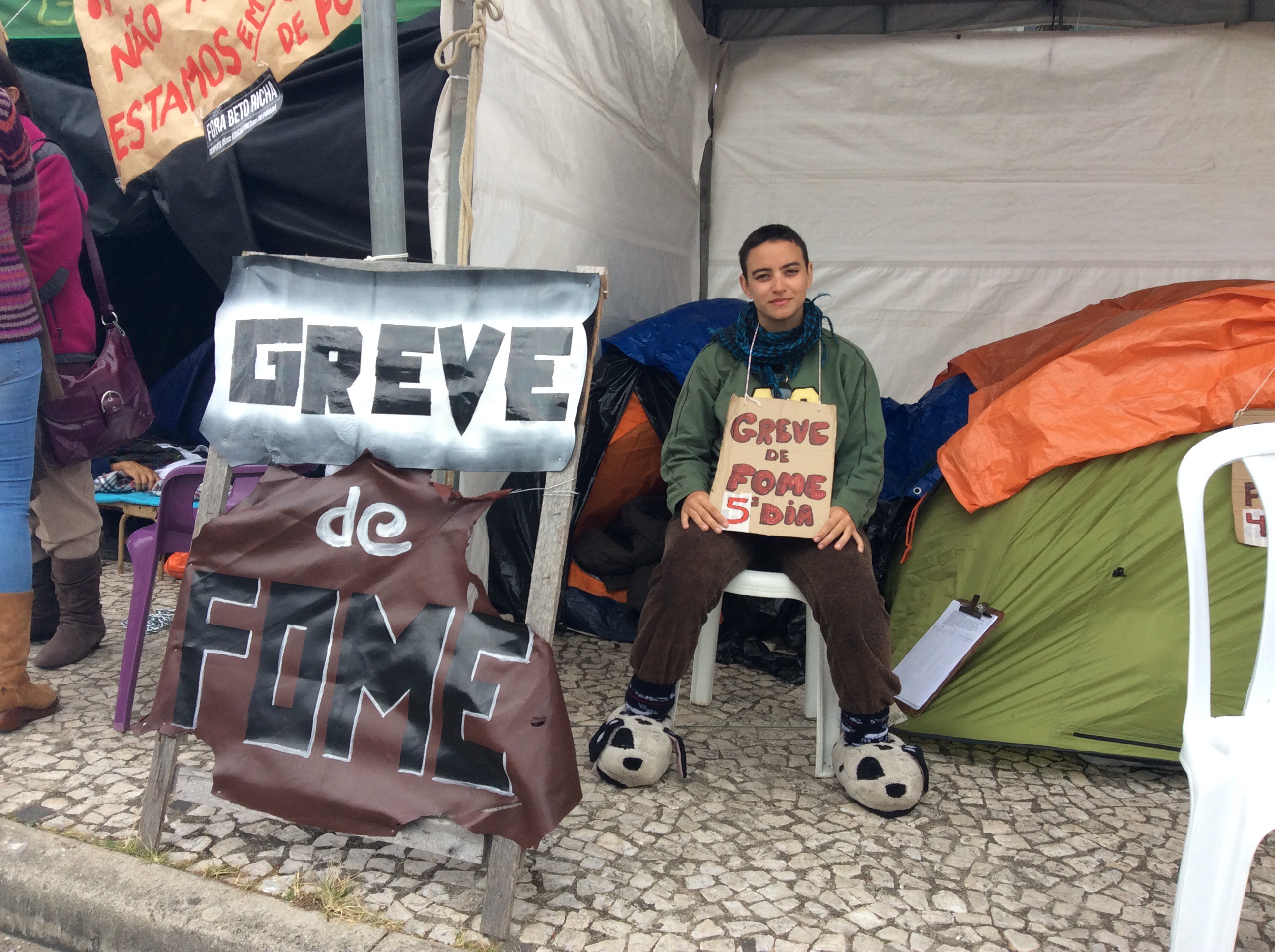 Depoimento do professor Pierre Cardoso Pinto, que junto com a professora Nilsa Barbosa da Paz e a estudante Júlia Campos (Unespar) pedem em carta para os senadores Roberto Requião (PMDB) e Gleisi Hoffmann (PT) que haja uma intervenção federal no Paraná. Informam que apenas vão parar a greve de fome se o governador Beto Richa (PSDB) sofrer o Impeachment pedido pelo advogado e professor universitário Tarso Cabral Violin (Blog do Tarso), pelos juristas e mais de 9 mil apoiadores.