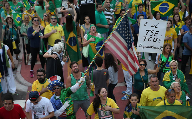 Leandro era confeiteiro em um supermercado e perdeu o emprego dois meses atrás. Vestia uma camiseta com a bandeira dos EUA, porque “a do Brasil sujou no baile”.