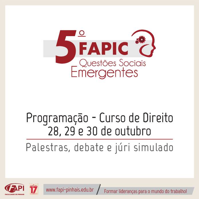 Hoje (28) tem início no Curso de Direito da Faculdade de Pinhais o 5º FAPIC, sobre questões sociais emergentes.