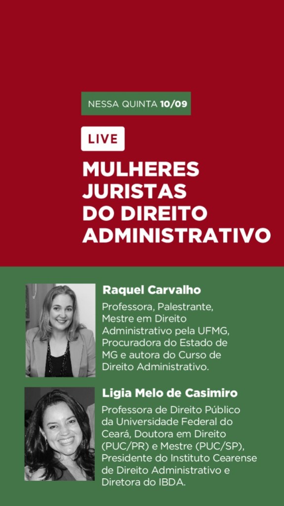 Raquel Carvalho e Ligia Melo de Casimiro participaram ontem (10) do programa “Estado e Administração Pública em Debate”, do Prof. Dr. Tarso Cabral Violin, pela TV do Instituto Edésio Passos (YouTube e Facebook), na série Mulheres Juristas do Direito Administrativo, e debateram a Reforma Administrativa apresentada pelo governo federal por meio da PEC 32/2020.