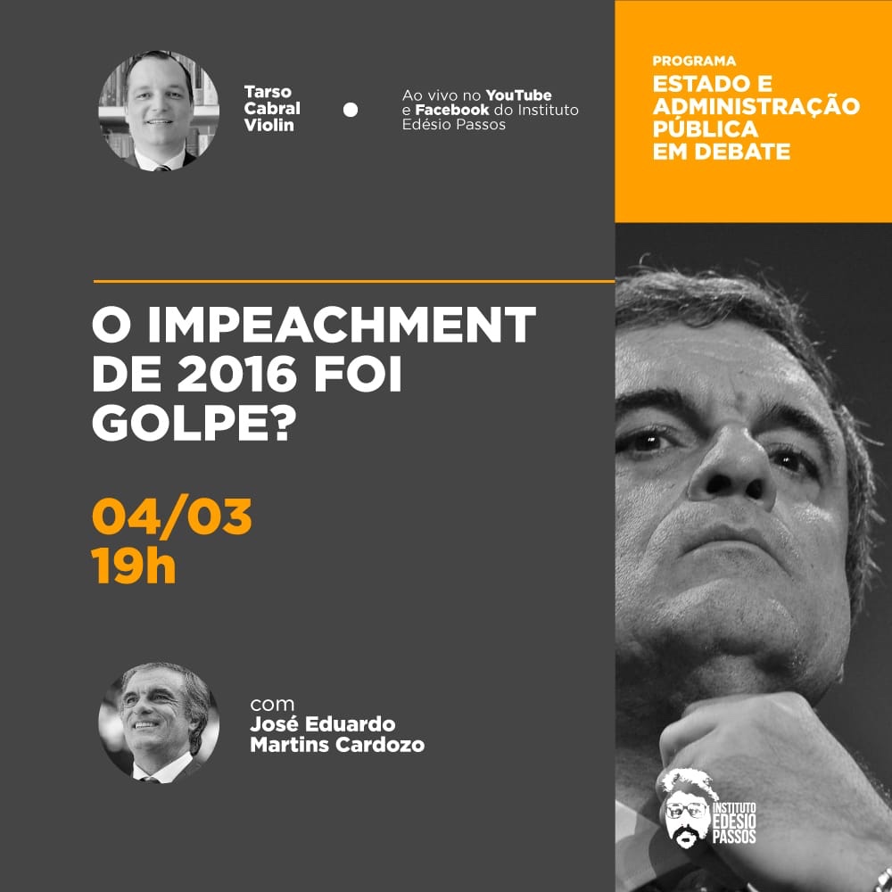 José Eduardo Martins Cardozo participará na quinta-feira, 04.03.21, 19h, do programa “Estado e Administração Pública em Debate”, de Tarso Cabral Violin, pela TV do Instituto Edésio Passos (YouTube e Facebook), sobre Justiça, Política e Democracia. Cardozo é advogado, professor de Direito da PUC-SP e ex-Ministro da Justiça e Advocacia-Geral da União. Tarso é Advogado, Mestre e Doutor (UFPR) e Professor de Direito Administrativo. Parceria com CAHS-UFPR, CASP-PUCPR e DACP-UniCuritiba. Solicitamos que marque na sua agenda e siga nossas redes. Links da IEPTV: http://www.youtube.com/c/InstitutoEdésioPassos