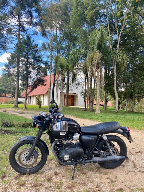 A Pretinha, minha motocicleta Triumph Bonneville T100 Black, mandou bem no caminho!