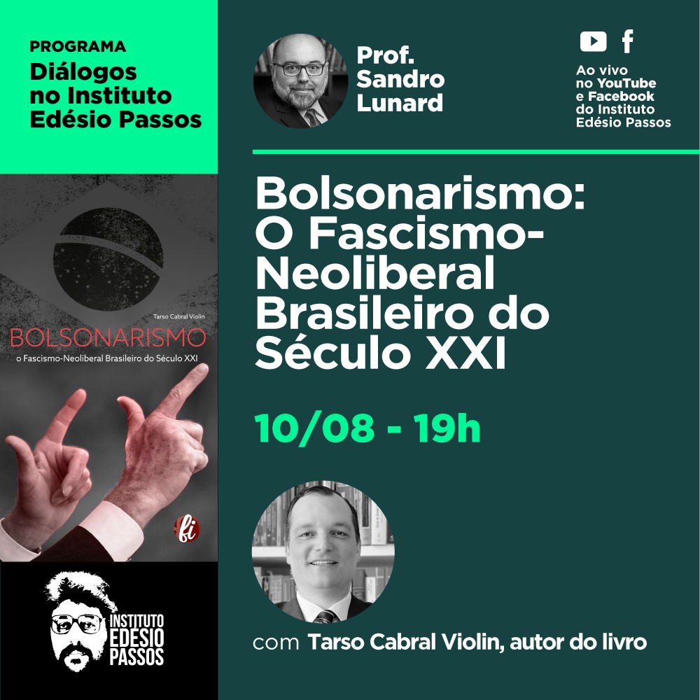 Amanhã (quarta-feira dia 10), o advogado e Professor de Direito da UFPR, Sandro Lunard, recebe o autor do livro “Bolsonarismo: O Fascismo-Neoliberal Brasileiro do Século XXI” e também membro do Instituto Edésio Passos — Tarso Cabral Violin, advogado e professor.