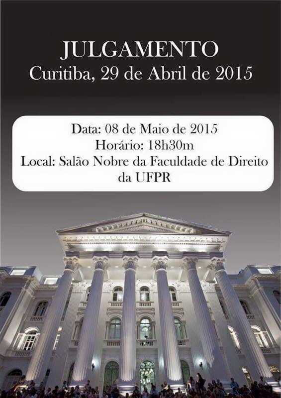 A partir de seu espaço que é de reflexão sobre o direito – seu conteúdo, seus desafios, seus limites, suas insuficiências e suas possibilidades – mas que ao mesmo tempo que é de inserção social comprometida com a os desafios do nosso tempo, a Faculdade de Direito e o Programa de Pós-Graduação em Direito da UFPR promovem amanhã (08 de maio de 2015), às 18h30, no Teatro da Reitoria, um julgamento tendo em face dos acontecimentos do último dia 29 de abril, em Curitiba.