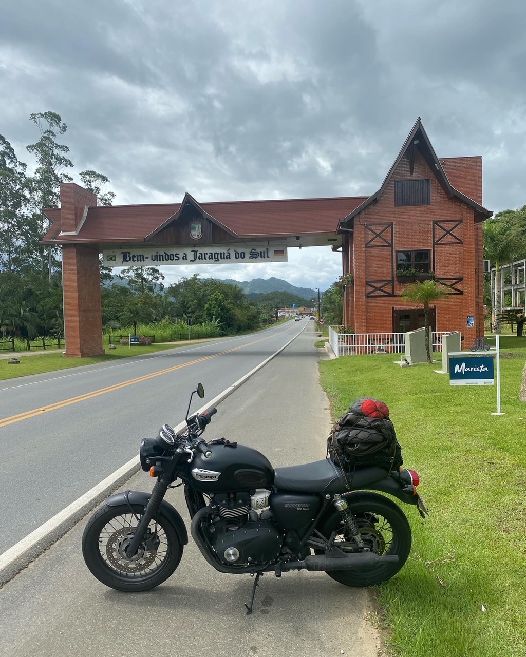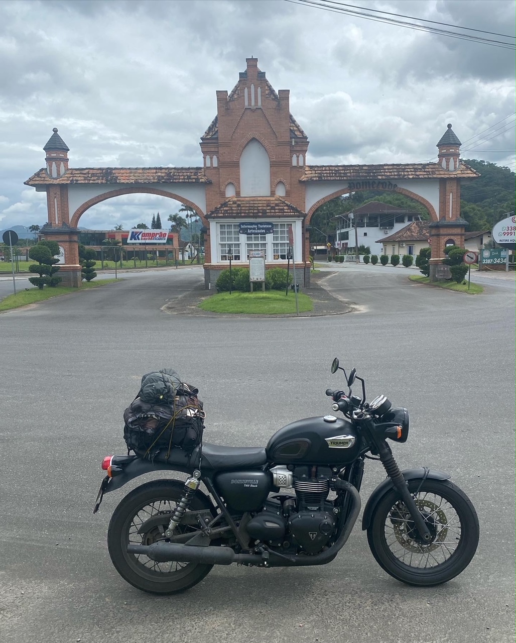 No último final de semana fui com a minha motocicleta Triumph Bonneville T100 Black de Curitiba, no Paraná, até a linda Treze Tílias, em Santa Catarina, uma cidade de colonização austríaca mas com traços italianos e alemães.