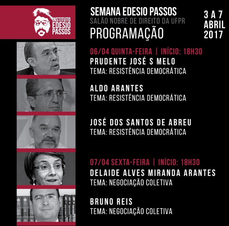 Um dos palcos centrais da atuação de Edésio, da militância estudantil e política à consolidação de referência em direito trabalhista e ícone da democracia e das liberdades individuais, foi a Faculdade de Direito da Universidade Federal do Paraná (UFPR), que está localizada no prédio histórico da Praça Santos Andrade, em Curitiba. Justamente por isso é que o local, símbolo da capital paranaense, foi escolhido para sediar a Semana Edésio Passos, de 3 a 7 de abril, e, dentro de sua programação, o lançamento do IEP.