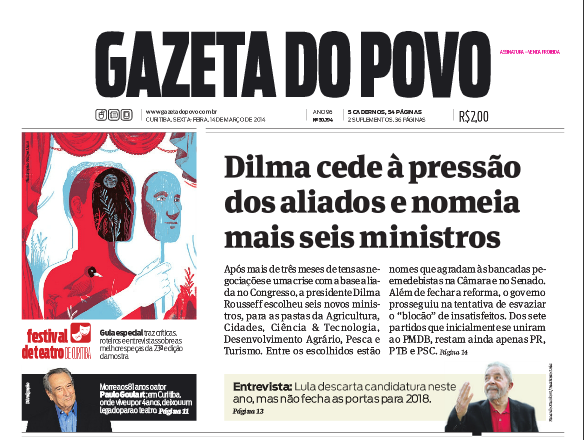 Jornal Gazeta do Povo faz campanha sistemática contra a presidenta Dilma Rousseff (PT), o ex-presidente Lula e o Partido dos Trabalhadores, com seu cartunista Paixão, editoriais e manchetes