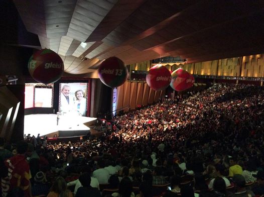 O evento foi no Teatro Positivo, dentro da Universidade Positivo, e contou com mais de 3 mil militantes e simpatizantes do PT e dos partidos de apoio à Gleisi, o PDT, o PCdoB, o PTN e o PRB.