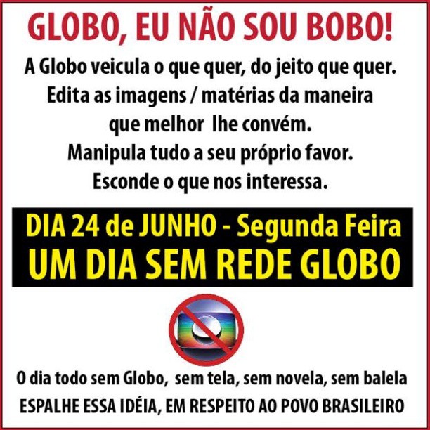 Dia 24 de junho – UM DIA SEM REDE GLOBO