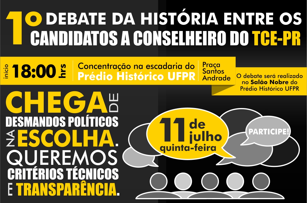 Debate na UFPR entre os candidatos ao TC na quinta-feira. Eu vou!